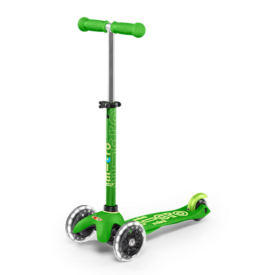 For the brightest kids on the block – say hello to the Mini Micro Deluxe light up scooter. The ultimate toddler scooter has rolled in with LED wheels which light up when you scoot. These motion-powered LED wheels generate light through dynamo mechanics. Which means there is no need to worry about replacing batteries or the lights going out. An exciting addition to the Mini Micro Deluxe you already know and love.