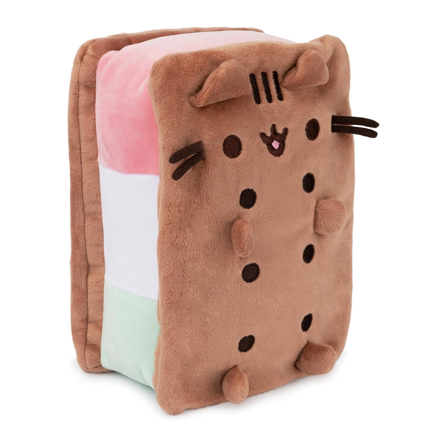 Pusheen is a classic dessert – a delicious Neopolitan ice cream sandwich! This Neopolitan Ice Cream Sandwich Squisheen features strawberry, vanilla and mint ice cream sandwiched between two chocolate-brown sandwich wafers! Made from super-soft elastic fabric and features Pusheen’s signature smile, paws and striped tail.