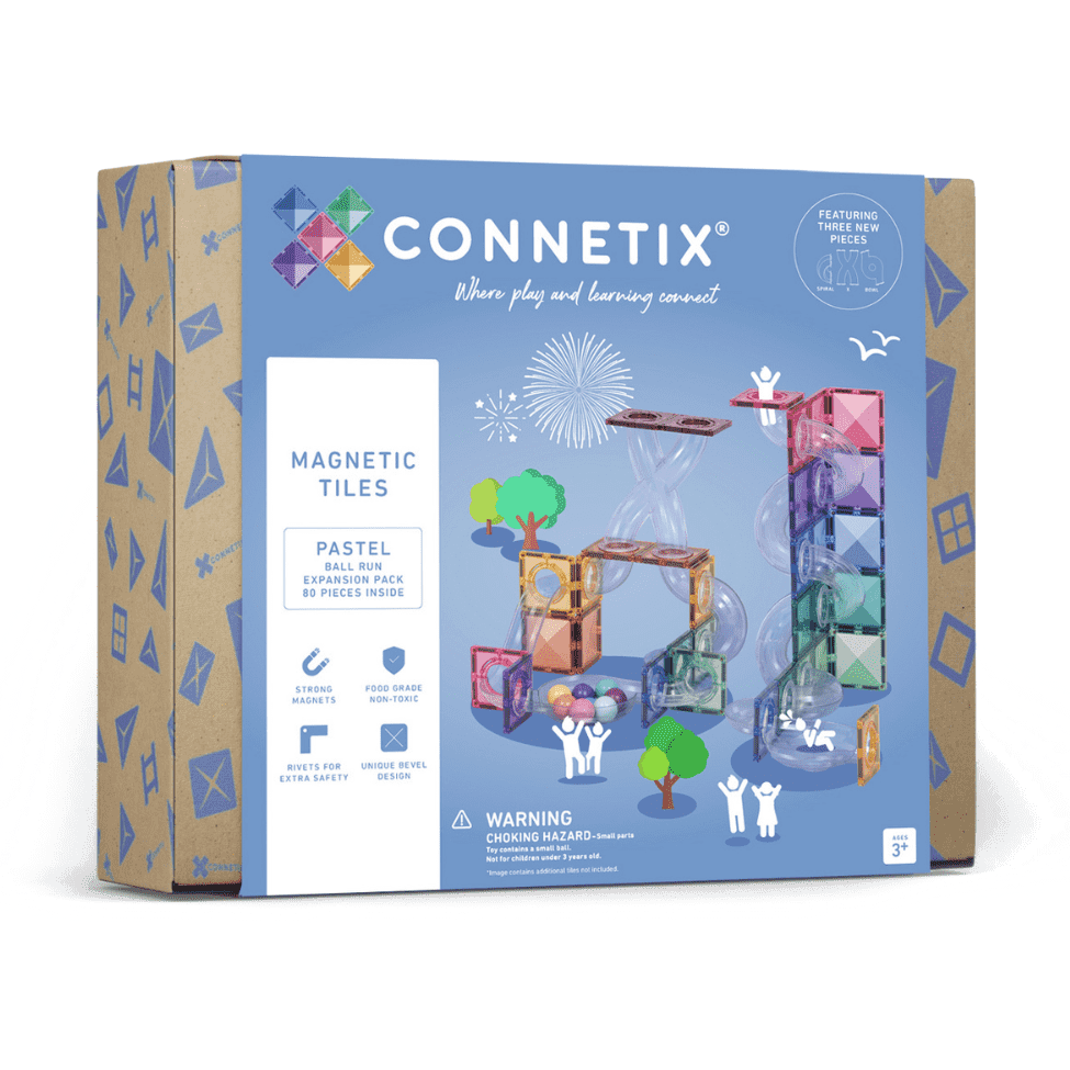 Prepare to have dazzling, zooming, spinning fun with the Connetix Pastel Ball Run Expansion Pack. Featuring new exclusively designed Spiral, “X” and double-bowl pieces, this expansion pack is sure to challenge a little engineer to create bigger, more exciting designs!