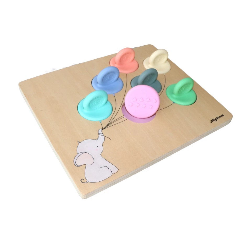 Little ones can develop their colour recognition by matching the silicone tops to the corresponding coloured balloon. Safe and toxic-free, the silicone tops are chewable and have little footprints on the base for fun with messy play in playdough, cloud dough, mud and more!