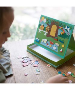 Decorate an animal treehouse scene or create a super cute animal picnic in the park. This portable playset features two backgrounds to choose from and over 70 magnetic play pieces.