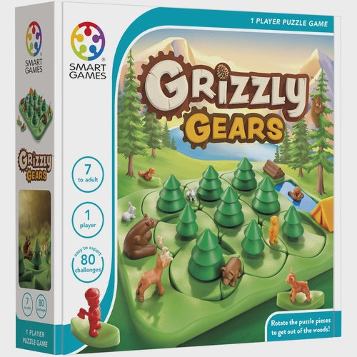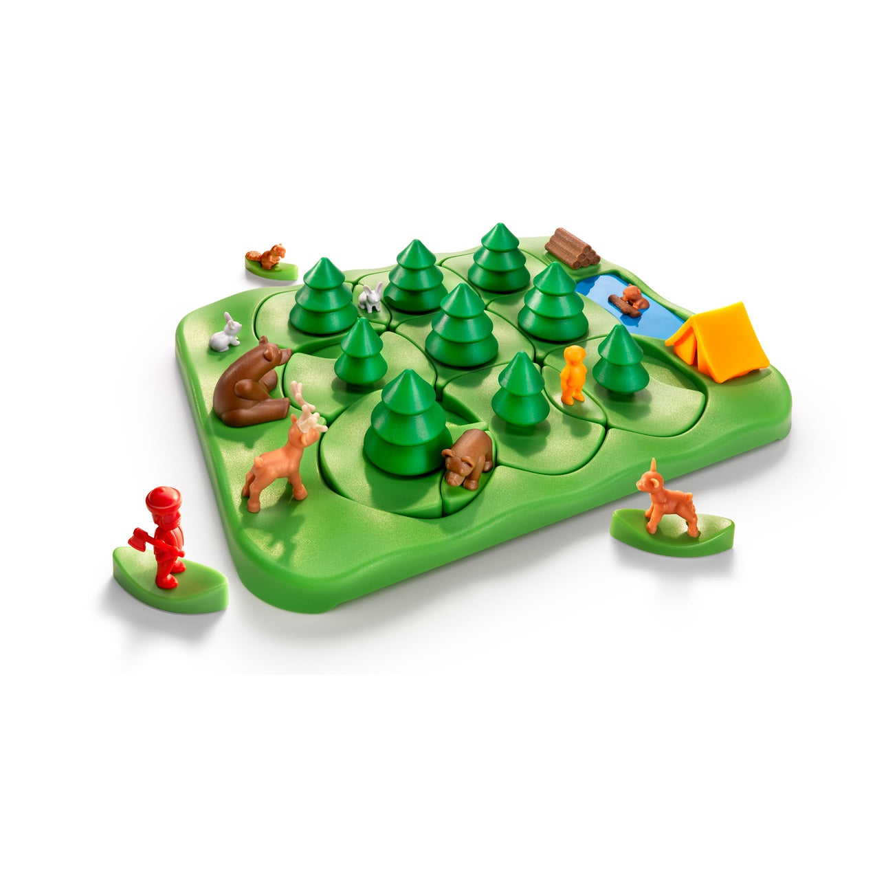1 game board, 9 rotating puzzle pieces with trees, 6 puzzle pieces with figurines, booklet with 80 challenges and solutions.