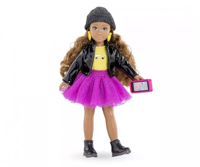 The Melody Fashion Week New York set consists of Melody, a 28 cm fashion doll with 4 accessories: 1 pair of removable earrings, 1 mobile phone, 1 cell phone case and 1 hat.