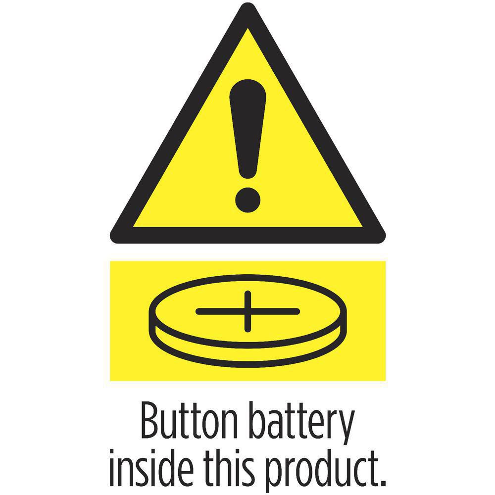 A Button battery can cause serious injuries if it is swallowed or placed inside any part of the body.